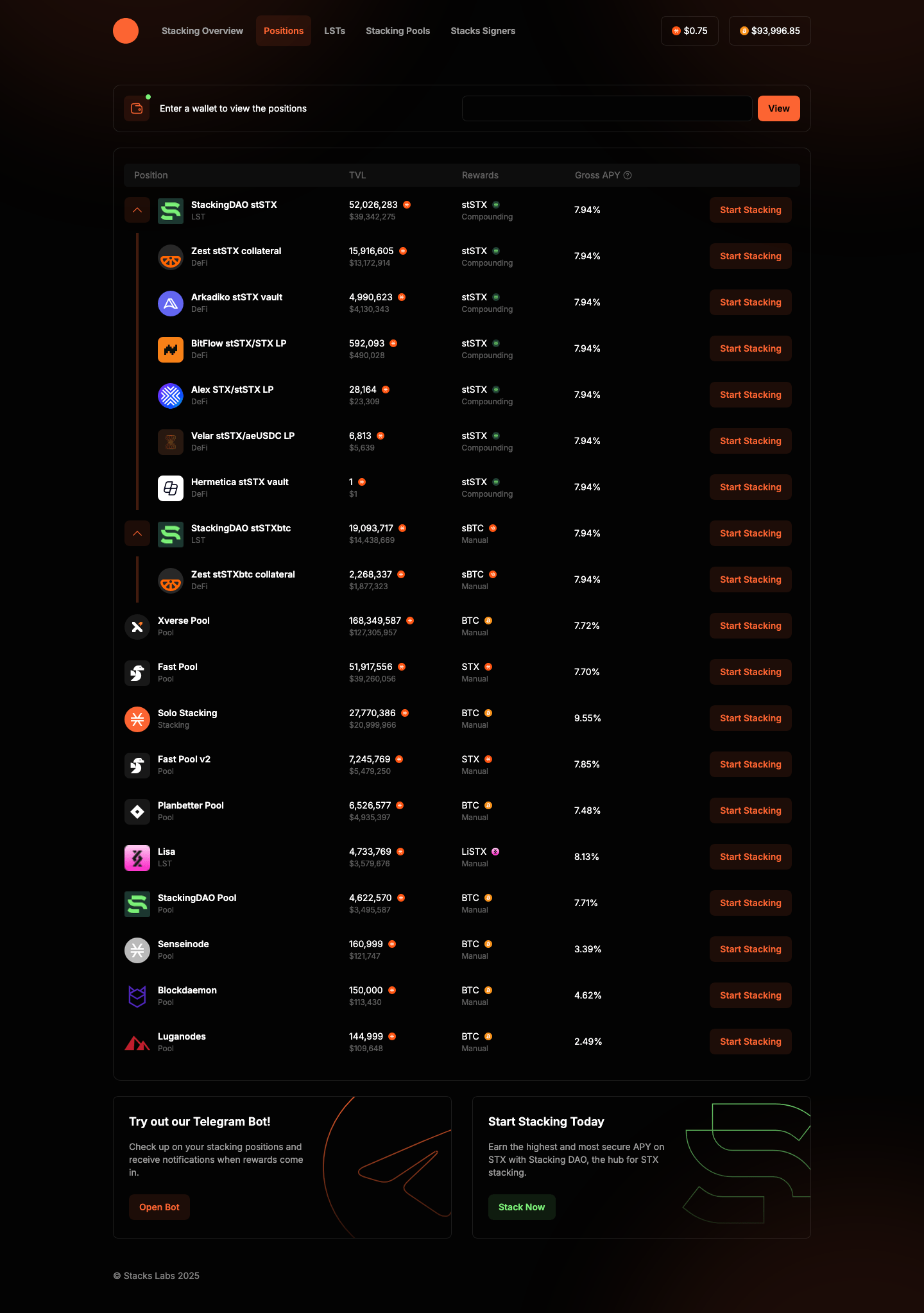 - Helped launch a key resource in the Stacks ecosystem for tracking on-chain stacking behavior.